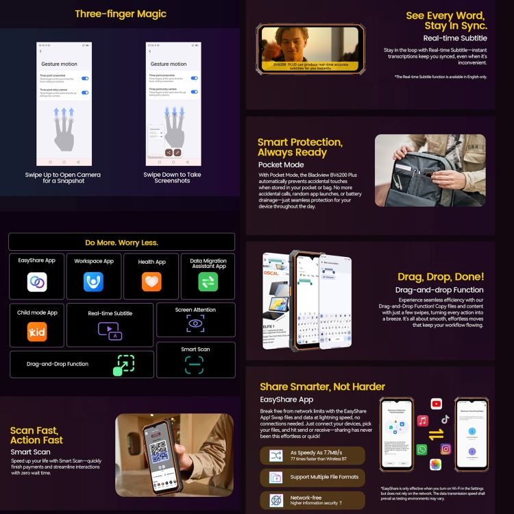 1. CPU: Unisoc UMS9230 T606, Octa-Core, 2 x A75 1,6 GHz + 6 x A55 1,6 GHz